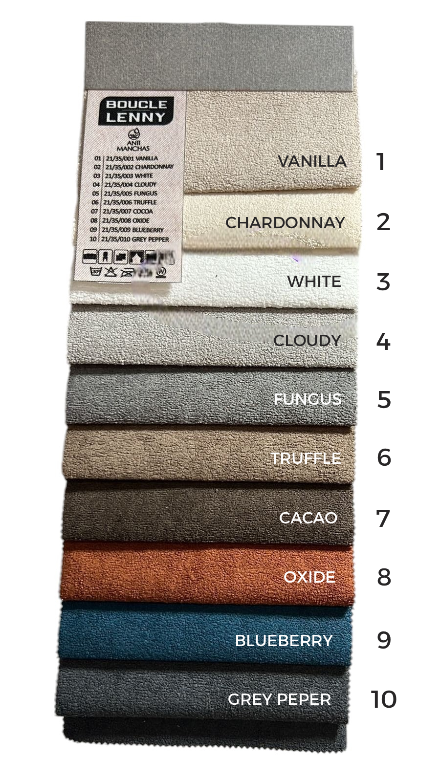 Boucle color White (suave, resistente al desgaste y fácil de limpiar con aspiradora).
